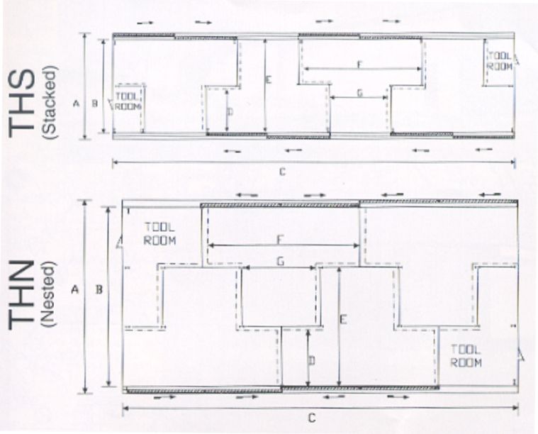 The T-Hangar is designed to store a maximum number of small planes in a relatively small area by dividing the building into “T” shaped units. T-Hangar units are usually leased out individually.  They will typically have either slide doors or bifold doors.